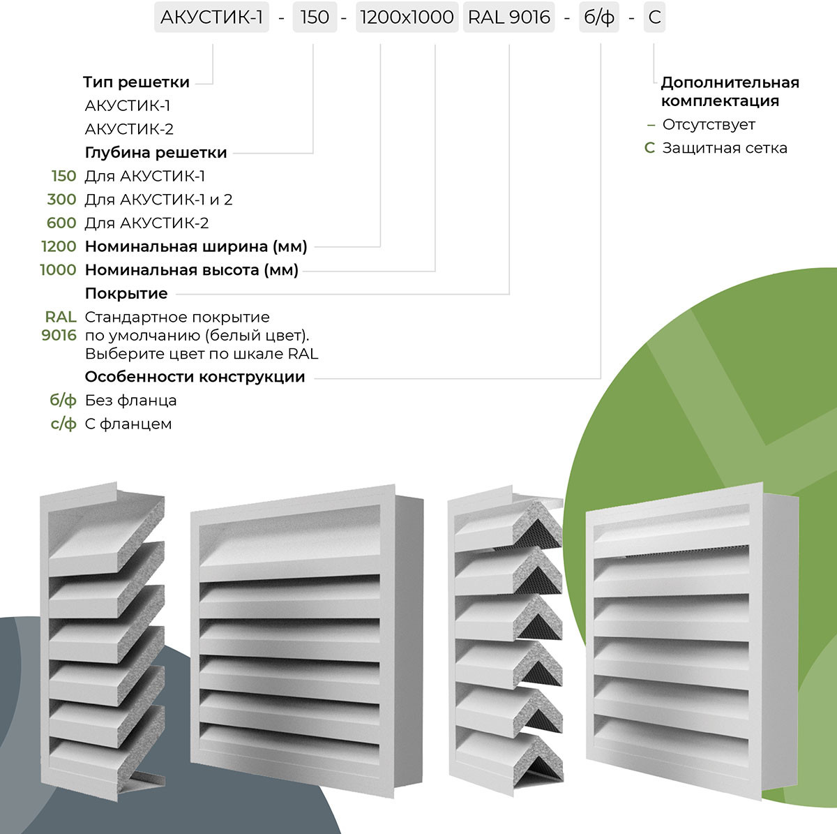 АКУСТИК - шумопоглощающая наружная решетка, предупреждающая проникание шума из окружающей среды в здание через приточные или вытяжные отверстия и наоборот. Решетка Акустик 1-150 имеет односторонние жалюзи глубиной 150 мм.