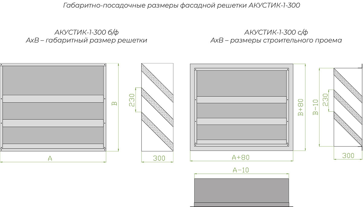 АКУСТИК - шумопоглощающая наружная решетка, предупреждающая проникание шума из окружающей среды в здание через приточные или вытяжные отверстия и наоборот. Решетка Акустик 1-300 имеет односторонние жалюзи глубиной 300 мм.