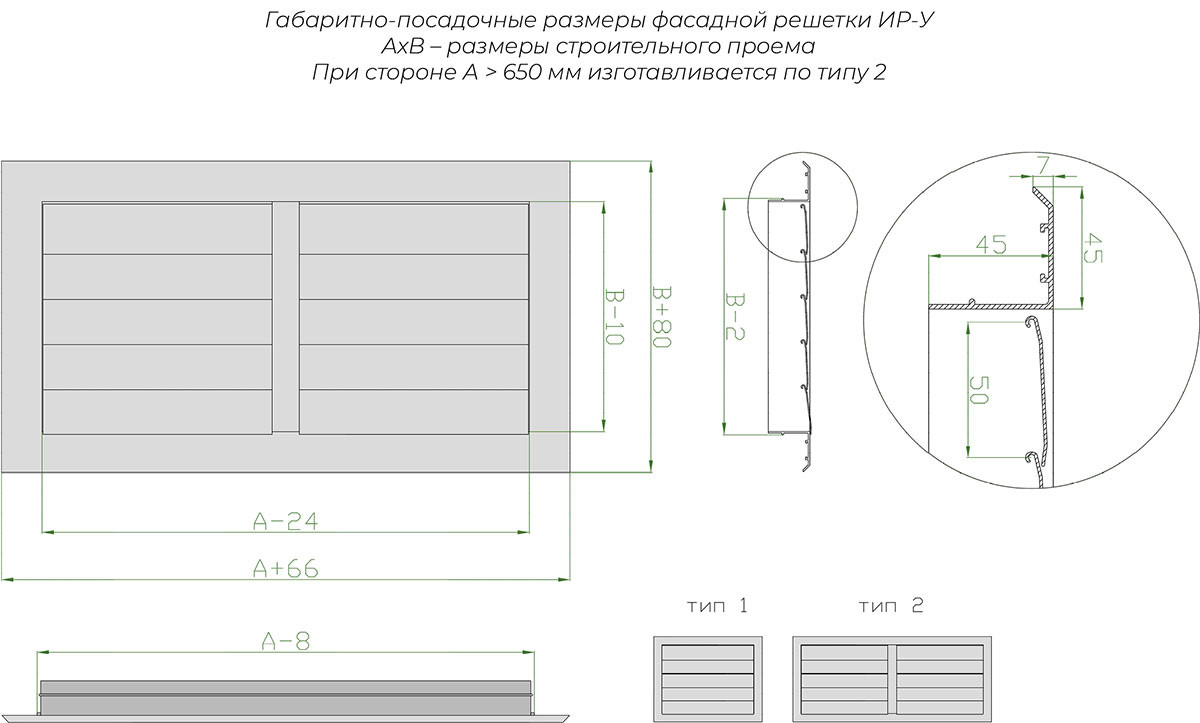 Способы установки однорядных и двухрядных вентиляционных решеток РАГ, РАГ-М, РАД, РАГ-В