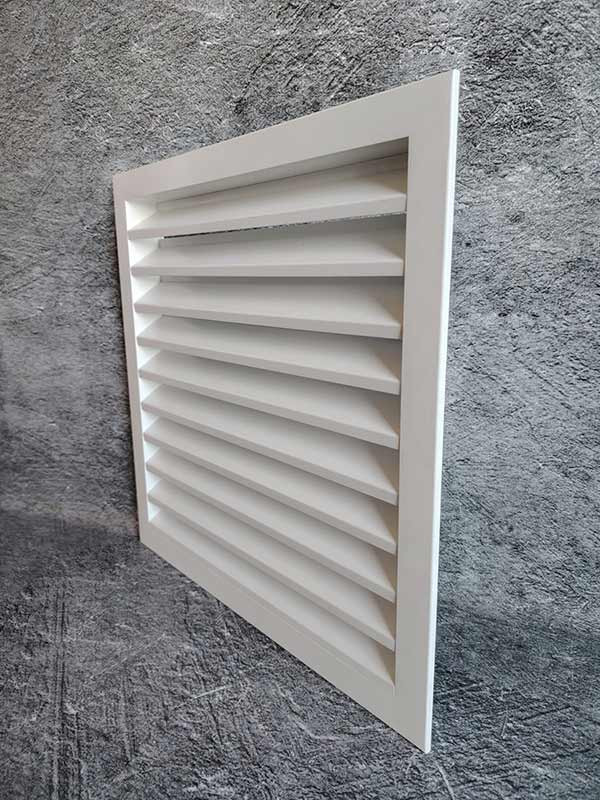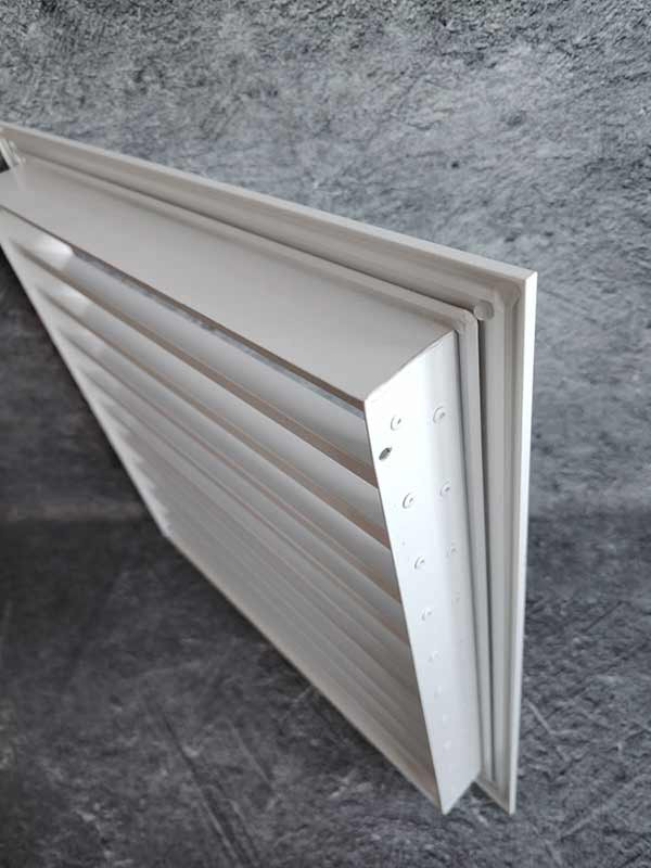 Жалюзийная решетка ВРН предназначена для забора воздуха и его выброса. Устанавливается на фасаде здания для обеспечения вентиляции и защиты внутреннего пространства от попадания атмосферных осадков. Решетка представляет собой рамку из уголка 30х30 мм и неподвижно закрепленных в неё Z-образных ламелей под углом 35˚.