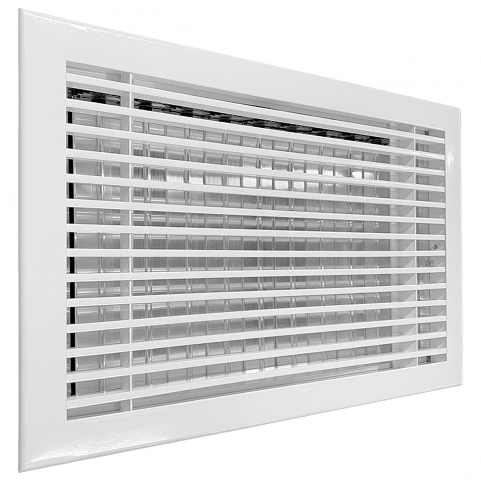 Решетка имеет рамку и горизонтально расположенные Y-образные жалюзи, угол которых зафиксирован под углом 0˚относительно плоскости. Раздача воздуха происходит с углом отклонения 0˚ от нормали.