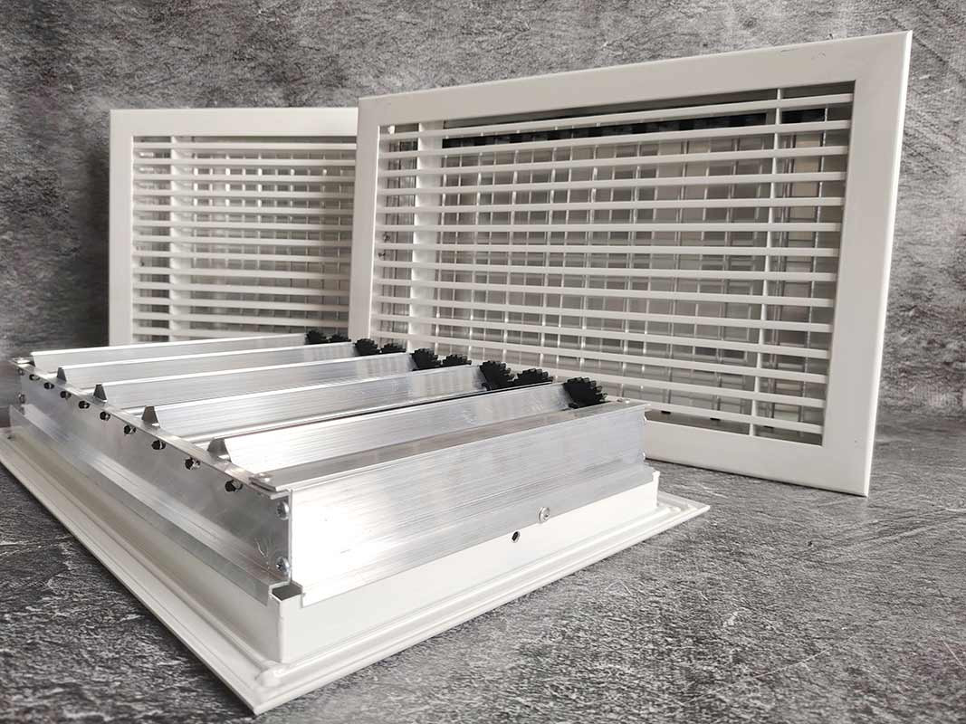 С тыльной части решетки установлен клапан расхода воздуха (КРВ). КРВ представляет собой рамку с установленными в неё лопатками. Положение лопаток регулируется при помощи ручки. Изменение положения лопаток позволяет изменять площадь свободного сечения решетки, тем самым регулируя объем подаваемого воздуха.