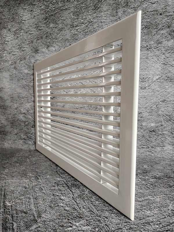 Решетка имеет рамку и горизонтально расположенные Y-образные жалюзи, угол которых зафиксирован под углом 0˚относительно плоскости. Раздача воздуха происходит с углом отклонения 15˚ от нормали в две стороны – от центра вверх и от центра вниз.