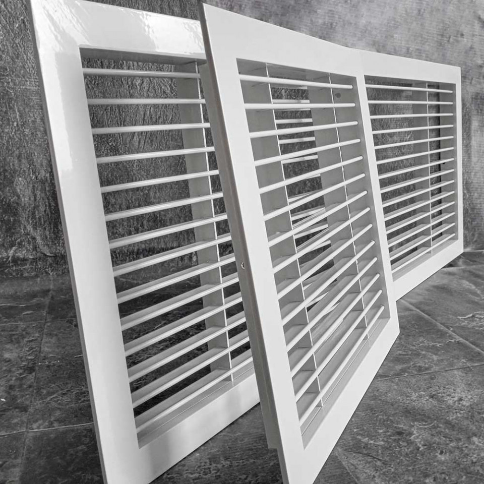 При изготовлении решеток используется запатентованный алюминиевый профиль АДЗ1 (ГОСТ 22233-2001). По умолчанию решетки окрашены полиэфирной порошковой краской белого цвета RAL 9016. По запросу возможно покрытие в другие стандартные цвета по шкале RAL.