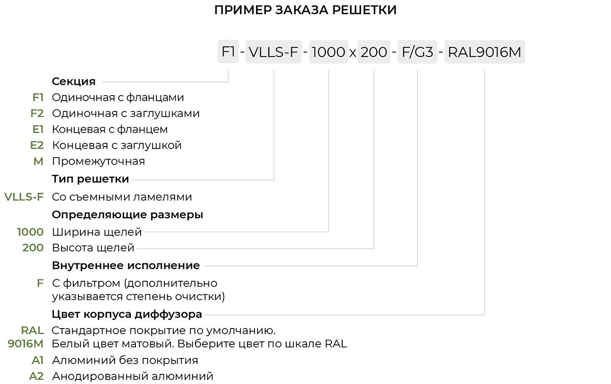 - решетки со съемным полотном VLLS-F могут комплектоваться фильтром по запросу;
