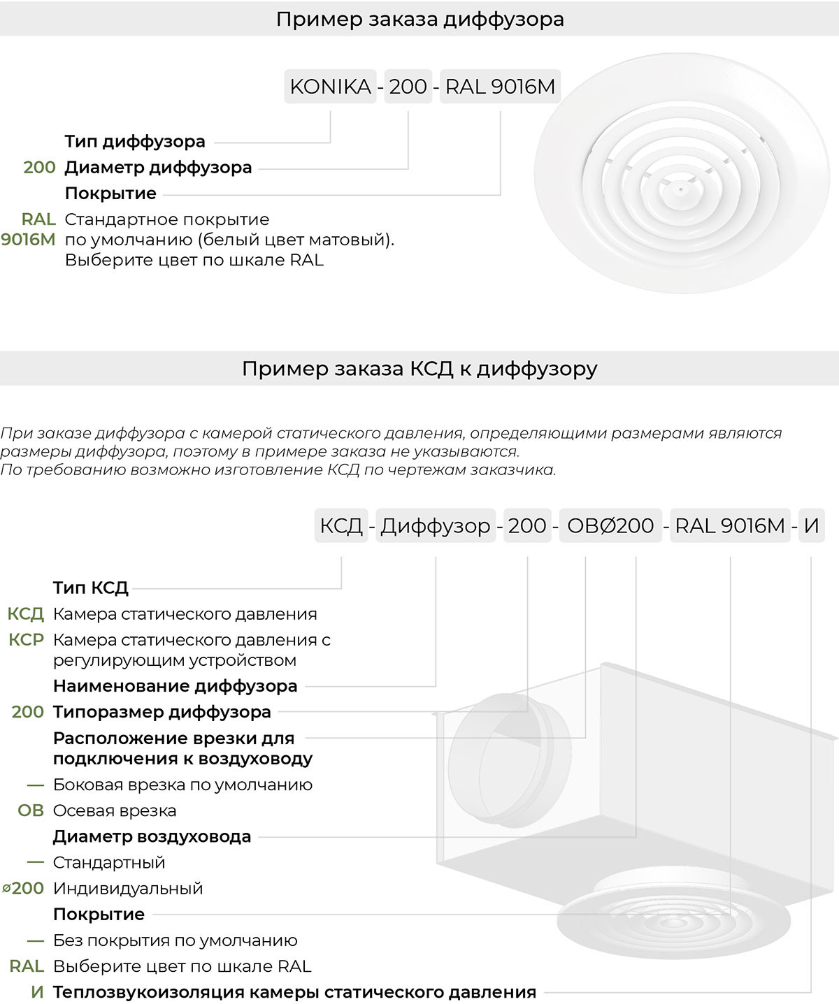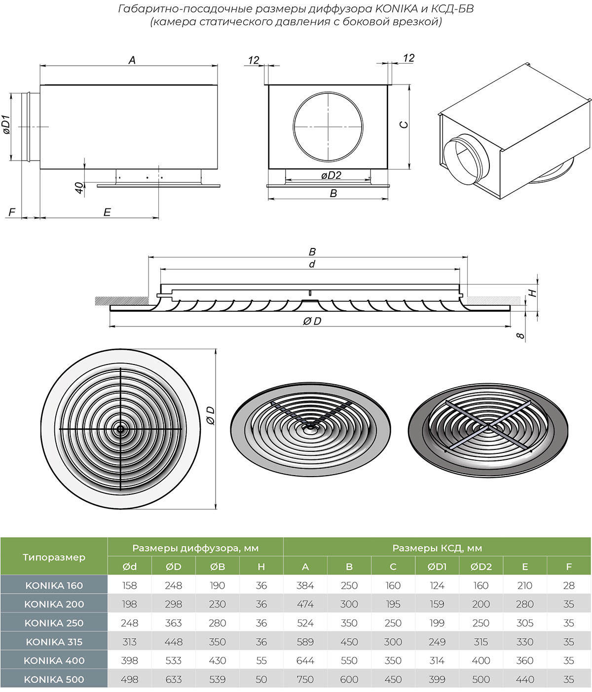 Круглый потолочный диффузор KONIKA используется в системе приточно-вытяжной вентиляции в помещениях различного назначения. Возможна комплектация камерой статического давления (КСД/КСР). Заказать КСД для веерного диффузора