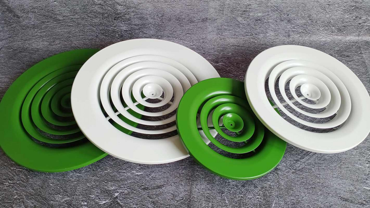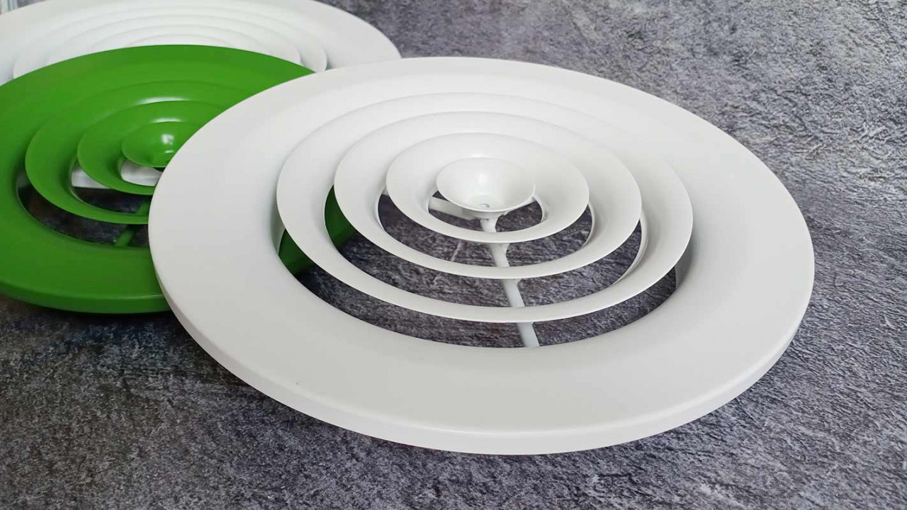 Диффузоры изготавливаются из оцинкованной листовой стали толщиной 0,9 мм и по умолчанию покрываются полимерной порошковой краской белого цвета RAL 9016 матовый. По запросу возможна окраска в любой цвет по международной шкале RAL. Камера статического давления по умолчанию поставляется без покрытия. По запросу возможна окраска в любой цвет по международной шкале RAL как диффузора, так и камеры.