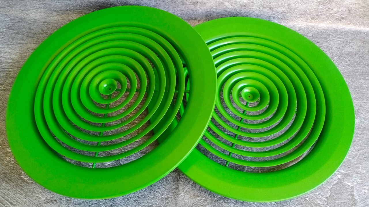 Корпус диффузора состоит из впускного конуса и веерной центральной части. Диффузоры KONIKA обладают высокой степенью эжекции, что делает возможной максимальную разницу температур для охлажденного воздуха ΔТ 12 °C.